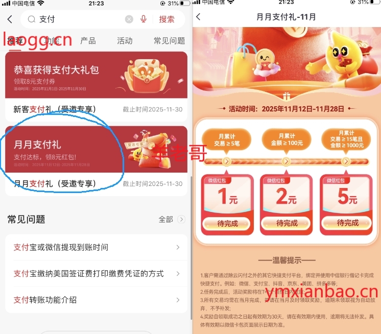 中信银行APP搜月月支付礼,月交易笔数和金额达标,可转vx零钱通共1+2+5=8