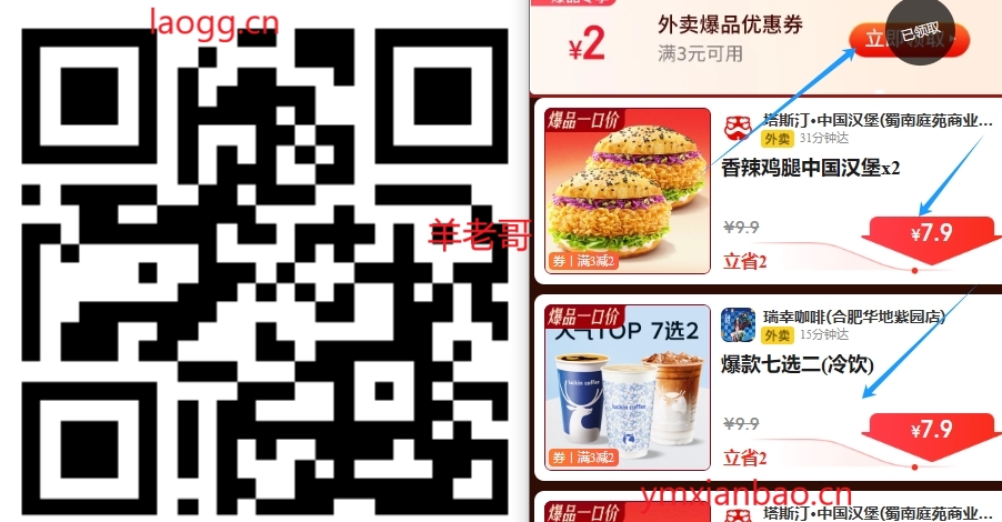 京东app或微xin识别,先领券,下拉有瑞幸7.9两杯,蜜雪冰城或塔斯汀等等