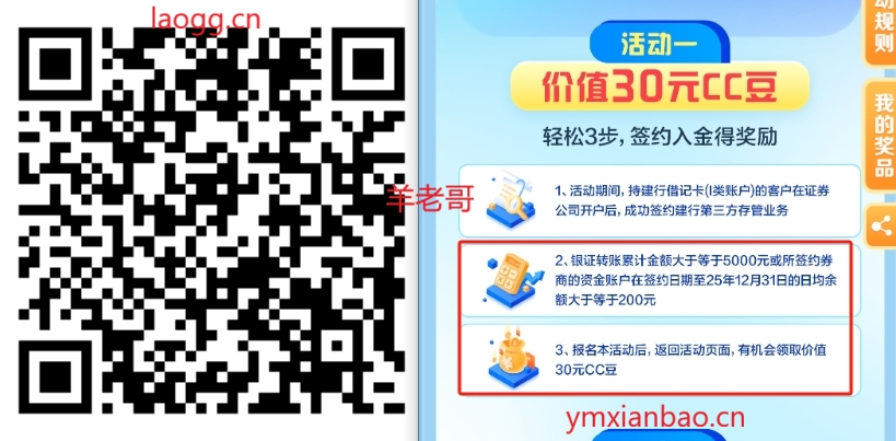 微xin识别,先报名,找一个任意开过的证券app换绑建行一类卡,证券app找到三方存管,转入5k再接着转到卡上就可以完成(自测:2500转入+转出=5k)。参加过同等的可能不能参加,进度可能不实时刷新cc豆兑立减金等