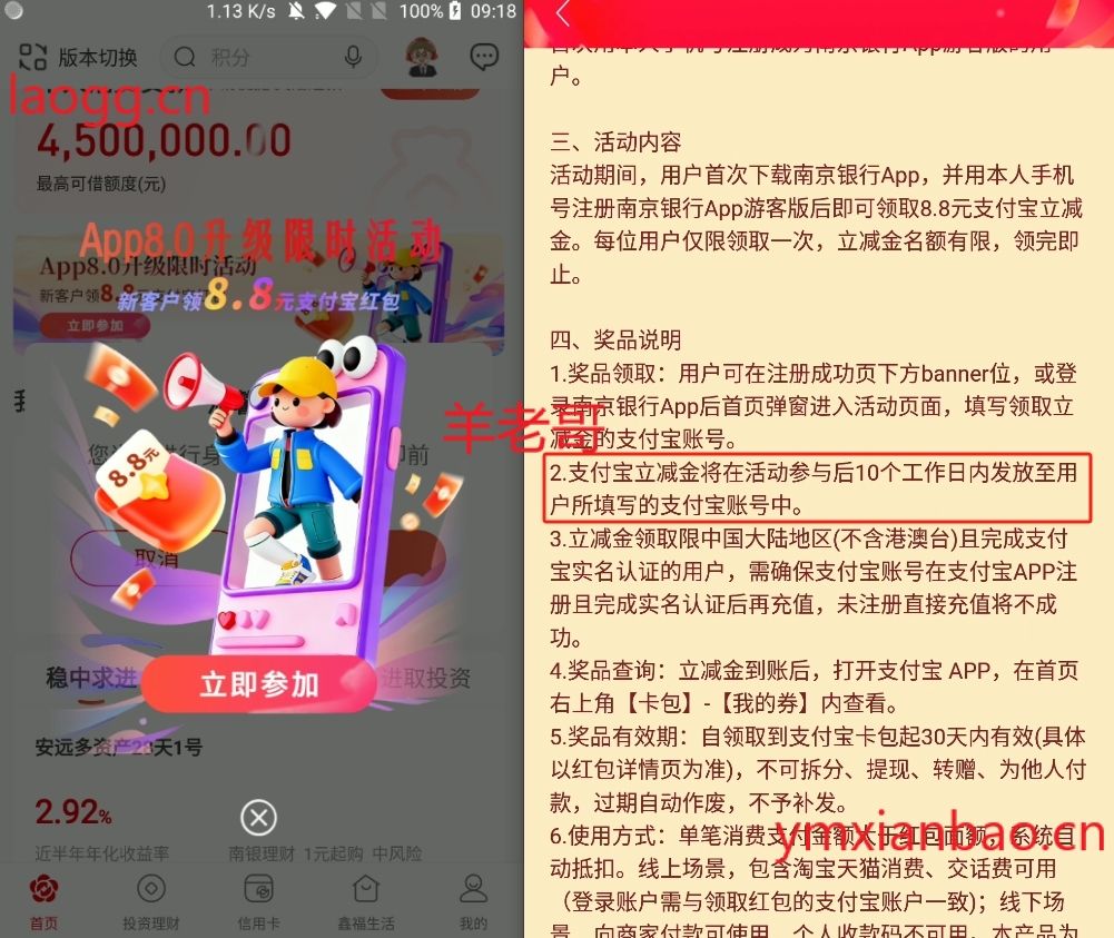 南京银行app,立减金不限卡,新号注册就有弹窗,不需认证绑卡,点进去就可以领,填zfb账号直冲,多号换号领,手机号和邮箱号可以各填一次,一账号到账2(到账慢差不多一星期),如果今天领没了可以不定时尝试领,每天不定时会补。
