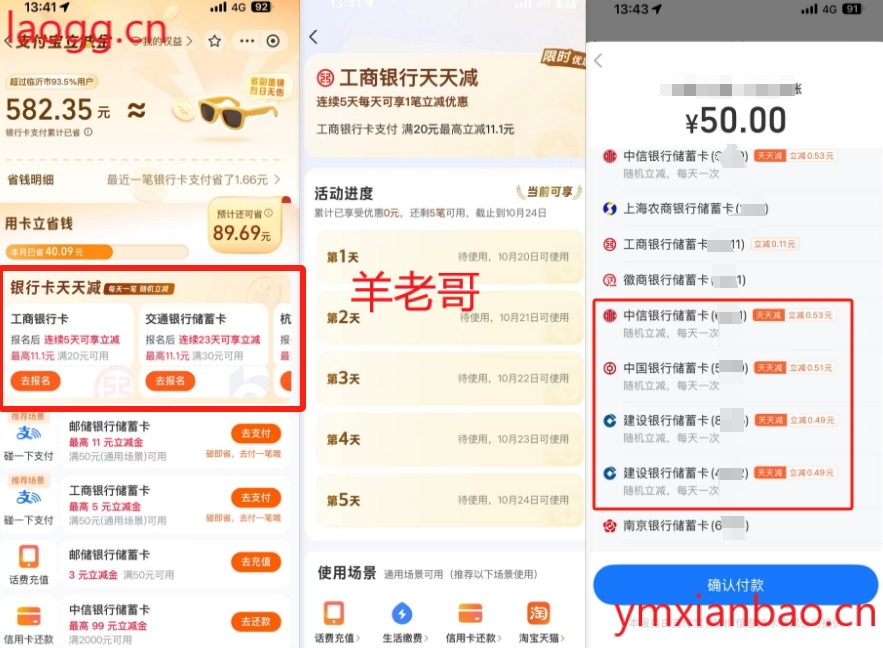 zfb多个yh卡满减最高12.12(转账可用)