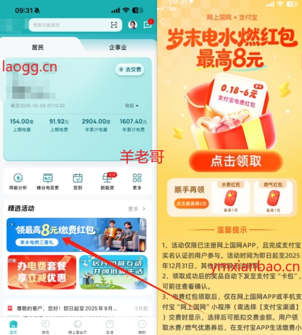网上国网app,活动水电燃三重礼,网上国网缴费唤醒zfb付款时可抵扣