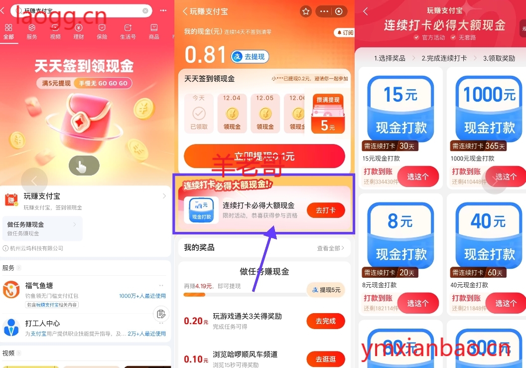 部分人可参与!支付宝搜图1内容,点横幅进入打卡,打卡指定天数得零钱,不清楚打卡具体要求