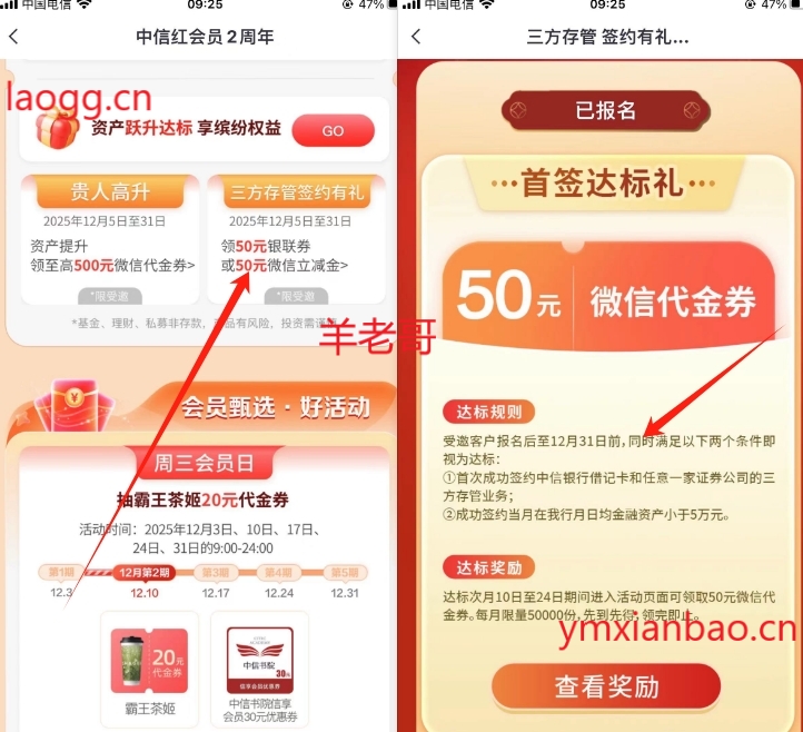 需首次签约,当月在中信资产日均小于五w,马上有的转走就行。