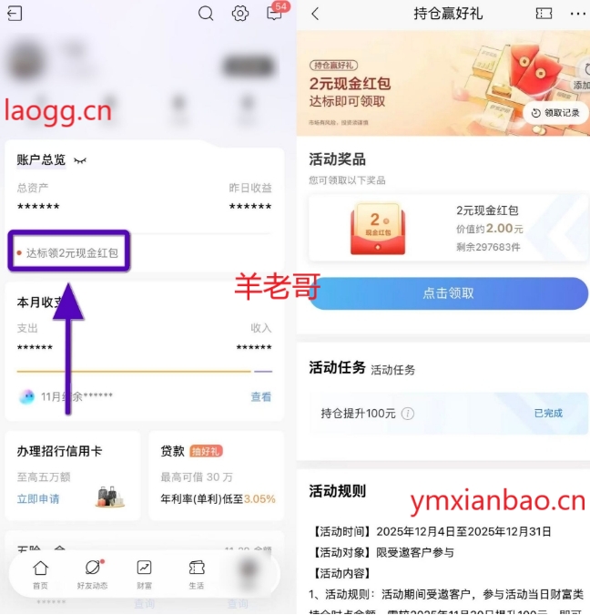 招行app,我的-余额,如图看看部分人有2亓,另外app搜:年终奖,有荭包雨