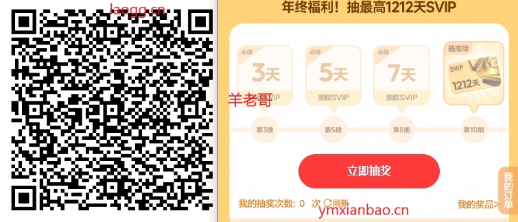 下拉浏览有一次机会可以直接抽,邀约10人最高1212天会员