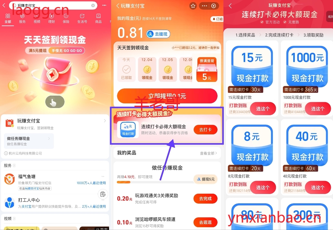 部分人可参与!支付宝搜玩赚支付宝,点横幅进入打卡,打卡指定天数