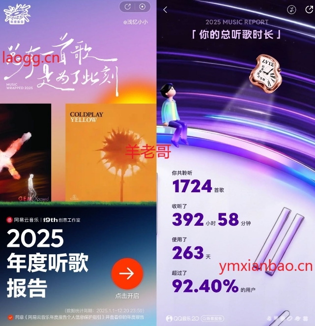Q音乐和网易云查看年度报告