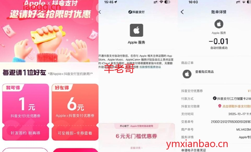 抖音苹果手机6亓无门槛券