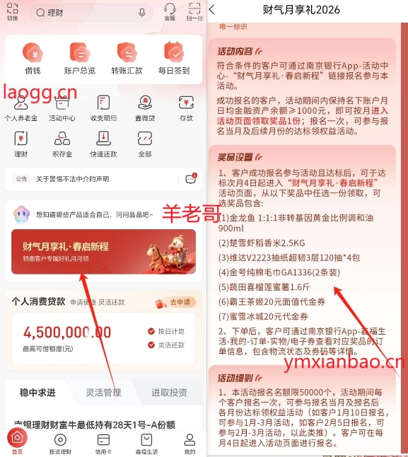 南京银行app首页或活动中心找到如图报名,需上一月月日均低于1000可以报名(参加过每月20立减金的可以先取走,下月再报名),成功报名,保持名下账户月日均>1000,放卡余额即可,次月4号可领