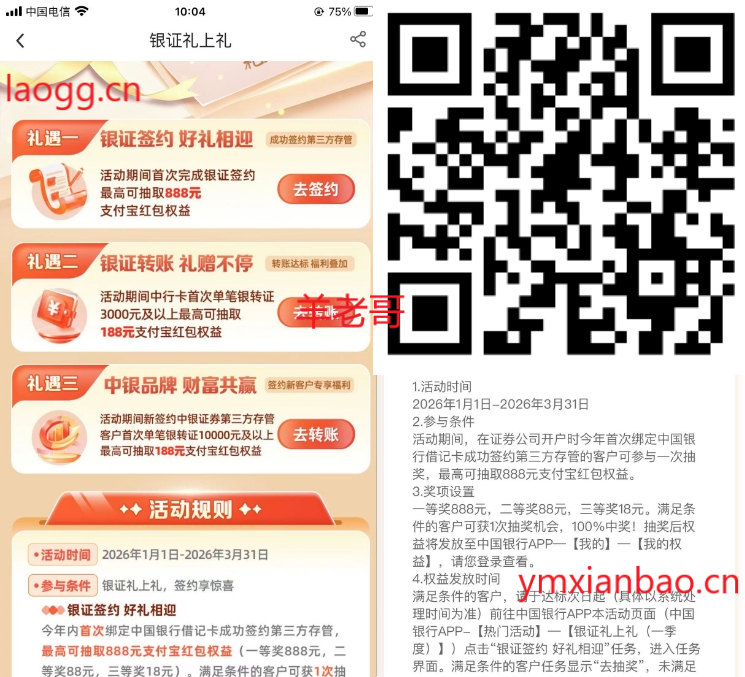 微xin识别跳转中行,先报名再随便找一个开过的证券签约,绑中行,二类也可以,次日回页面抽,是年度首次新的一年已经更新,底下两个可能需要实体卡才能完成转