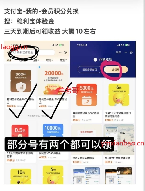 zfb-我的-会员积分兑换,搜:稳利宝,三天到期后有收益,有1-10左右,部分领不到