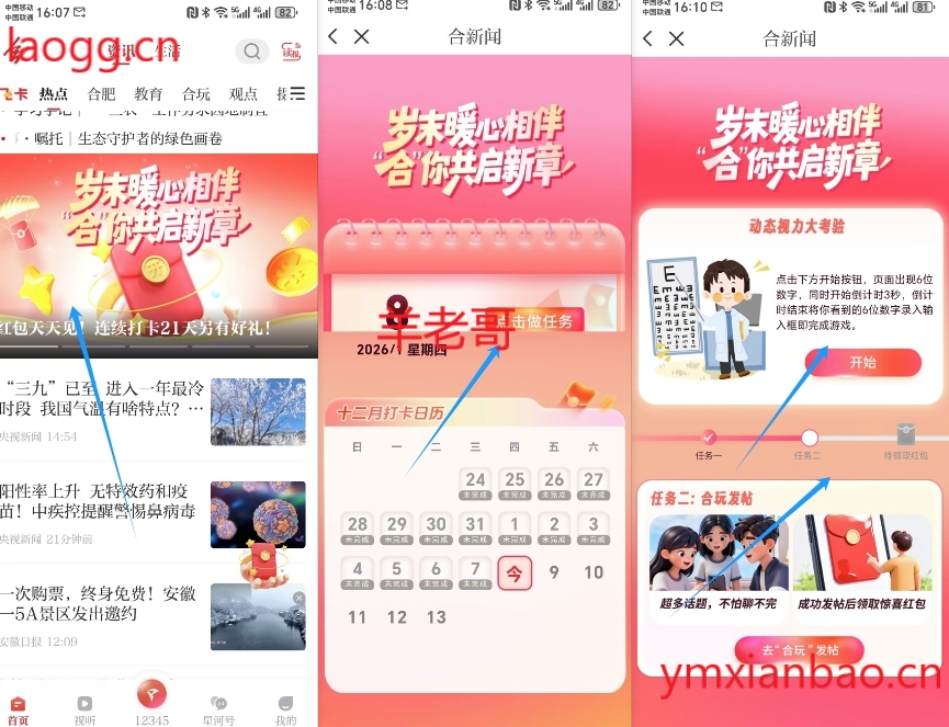 合新闻app,首页横幅,第一个进去,做任务,任务做完等帖子审核有5.20,绑微x手动提