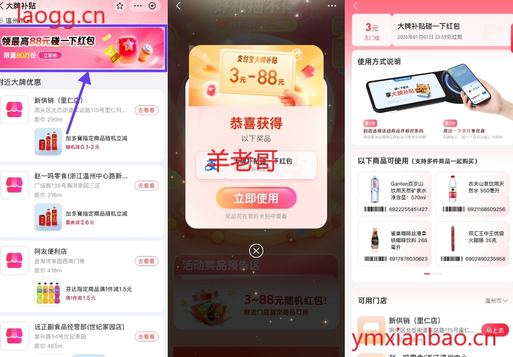 支付宝大牌补贴抽3~88亓碰一下