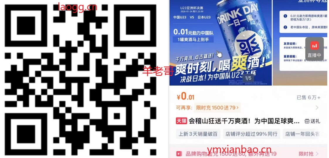 淘宝0.01一瓶啤酒(国足夺冠得12瓶)