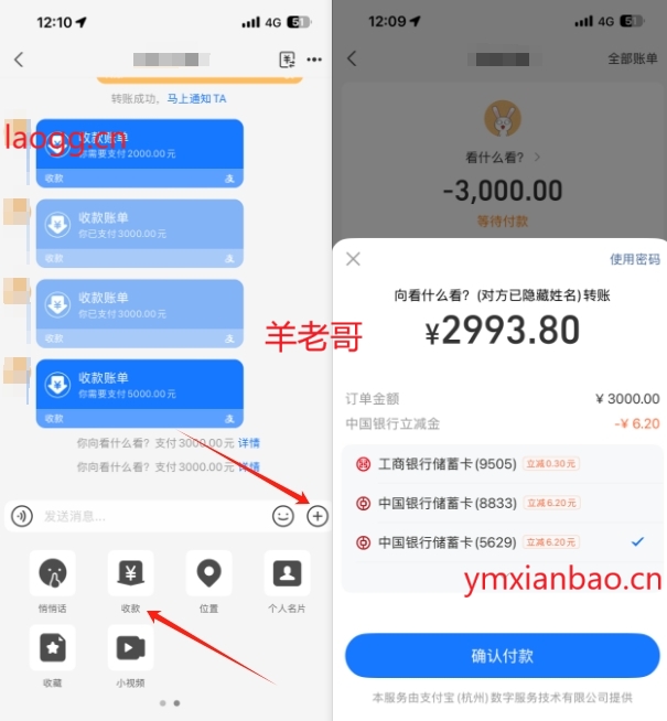 zfb找到对方的聊天框,+号点开,小号发起收款,大号用中行卡2次3k-6左右,需使用中行卡,发帖测试多张卡都有或全国通用