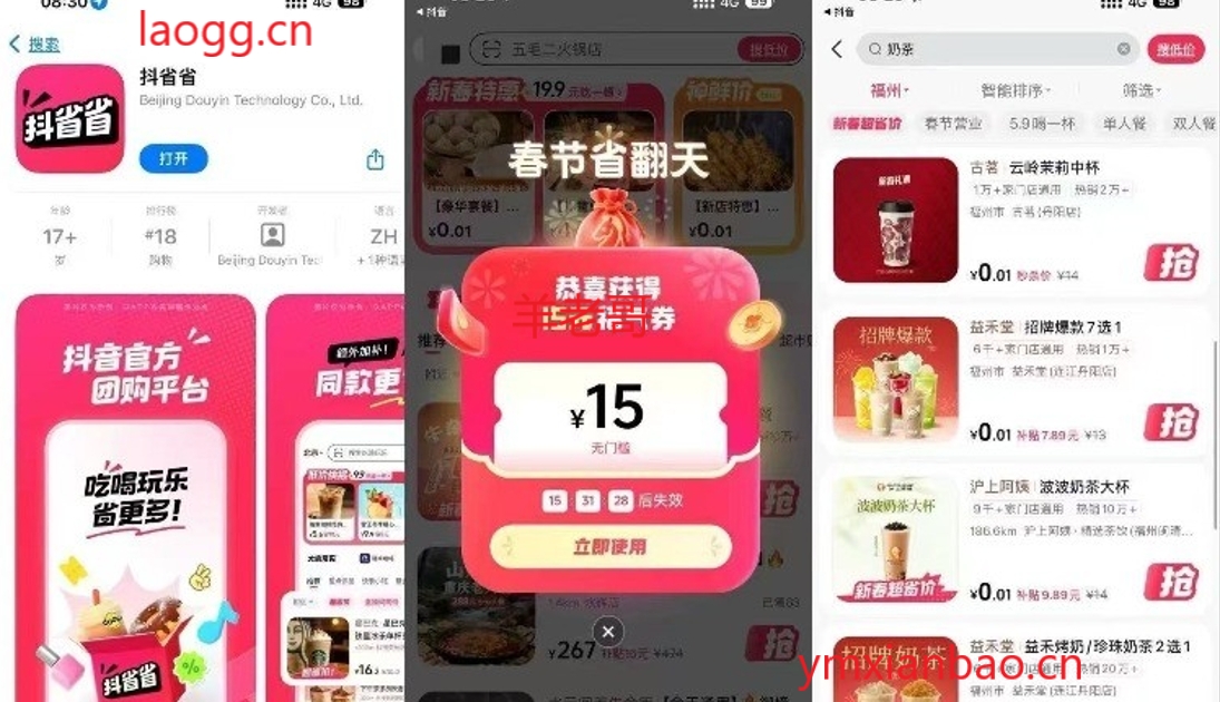 抖省省app,首页弹窗10/15无门槛,抖音团购全部可用,图标如图,别下错了认准抖音开发者