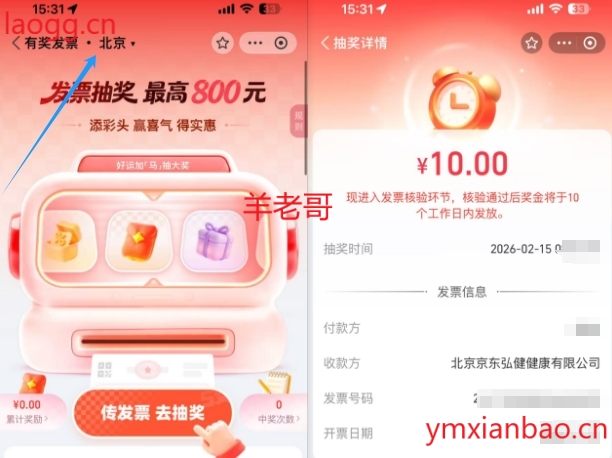 先到京东app开票,我的-设置-发票抬头管理,找到100+的开,不到100就合并开,发票抬头写自己名字,不要多带字,如有显示北京/上海等地的都可以抽,支付宝搜有奖发票,切换北京,上传抽,非必中。抖音也可以抽,但同一张票仅能一次,重开冲红不会到账,同一渠道一天三次。如果开出来的是济南或其他地区,就在云闪付抽,地区多