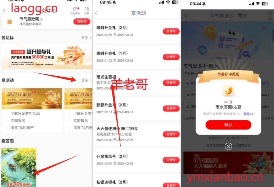 工行app-任务中心-答题答案a,66/2026豆,享活动-雨润生百福,两次抽