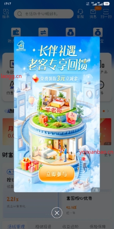 建行APP 部分人打开,随机弹3亓立减金,可能需要长期没登陆的,大部分没弹窗