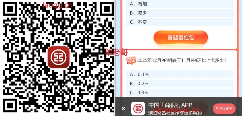 微xin识别,跳转工行下拉找到如图,点进4个答题,答案分别为:ABCC ,火爆一直点即可。