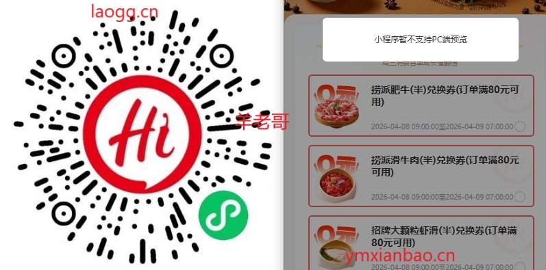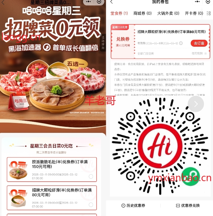 微xin识别,5选1领半份虾滑/肥牛/毛肚券等,限周三可用,刚好要吃海底捞的可以领下