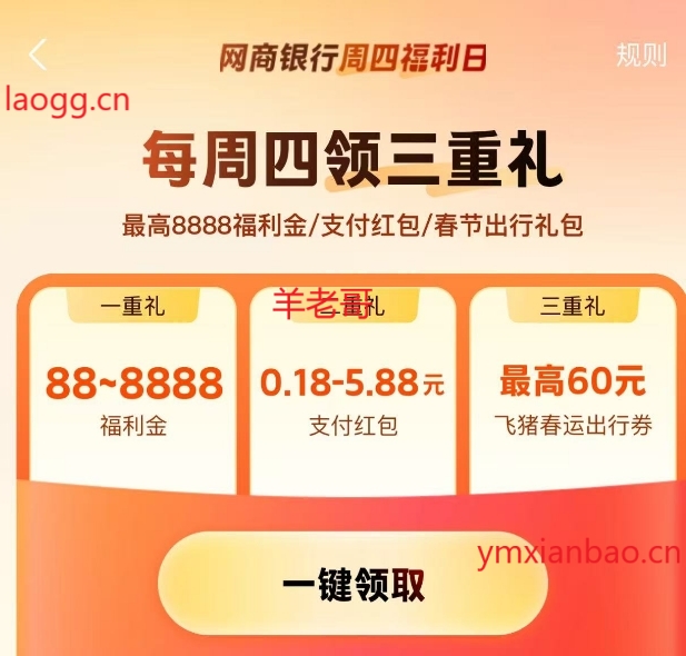支付宝搜:网商银行周四福利日,横幅进一次机会领0.18-5.88立减