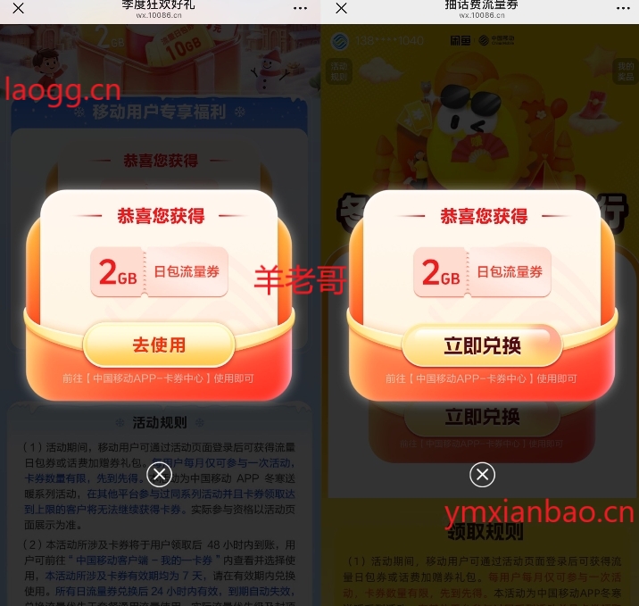 缺流量的可以领下!券有效期7天,在“中国移动APP-我的卡券”中激活