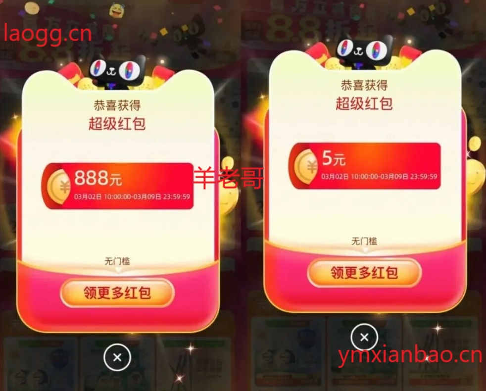 淘宝3.8每天领通用荭包