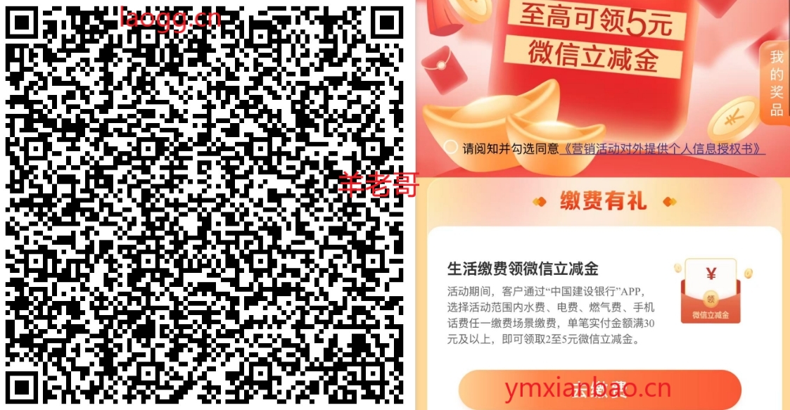 建行生活缴费抽2~5亓立减金