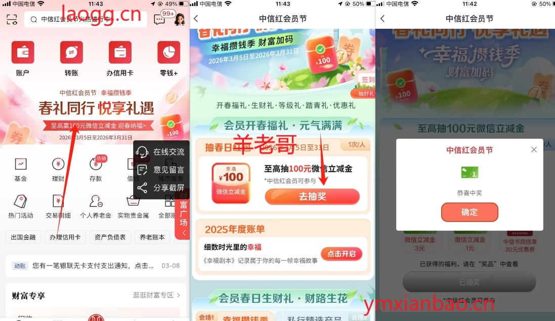 中信APP,首页顶部横幅,春礼同行 悦享礼遇,第一个进去直接抽
