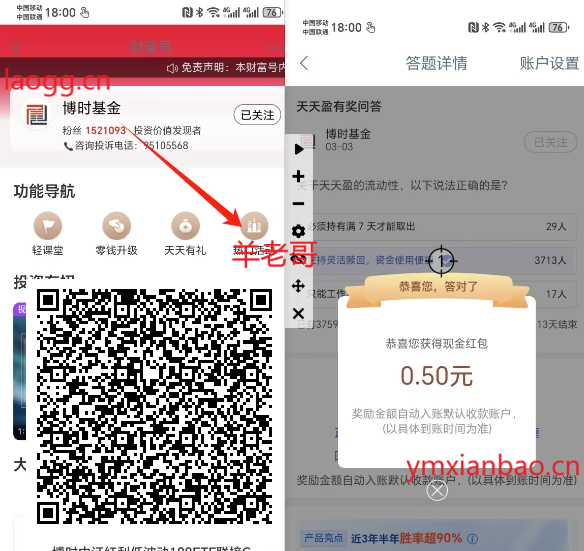 微xin识别跳转,博时基金,热门活动,答案第二,0.5零钱到卡