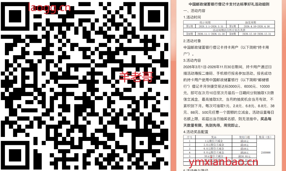 邮储达标次月抽最高500亓立减金