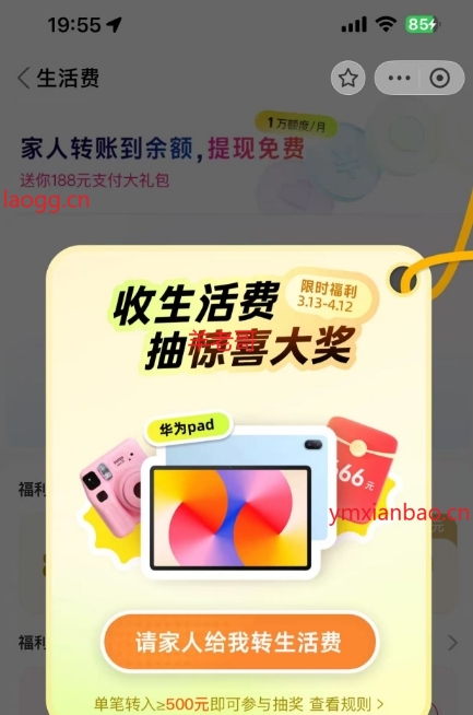 zfb搜生活费,找人送大号500生活费,概率中支付荭包/实物
