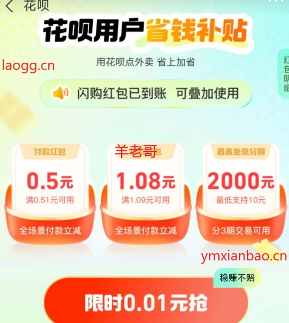 zfb花呗部分0.01开省钱补贴