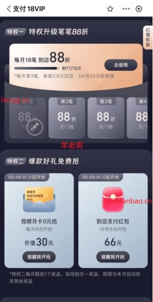 支付宝18VIP8.8折优惠18次