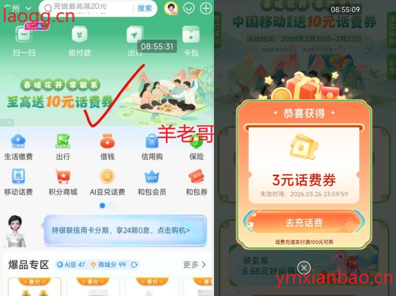 和包抽移动最高100-10亓话费券