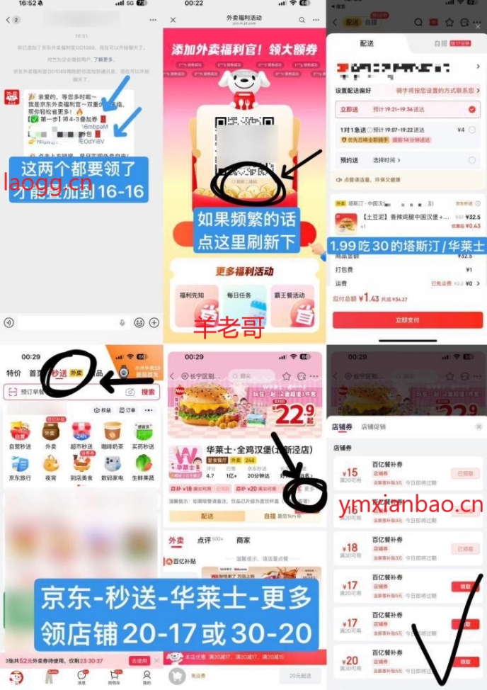 2:横幅进:https://u.jd.com/cGK0qh4,搜塔斯汀/华莱士 店铺-更多,领30-20/20-17 若没有就换一家