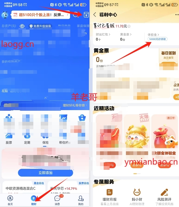支付宝-理财-右上角红包-5w七天理财体验金,多zfb都能领,加起来收益可能达到10+,到期会提醒