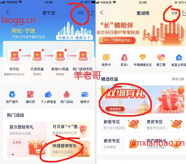 浦发app搜:城市服务,1:切换宁波下拉快捷首邦。2:切换长沙,横幅双绑有礼。0.01用浦发卡,不然会退,两个活动或双卡客户才可参加(cxk+xyk)