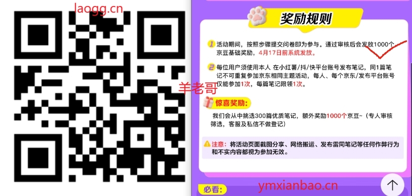 京东发小红书/dy/ks1000京豆