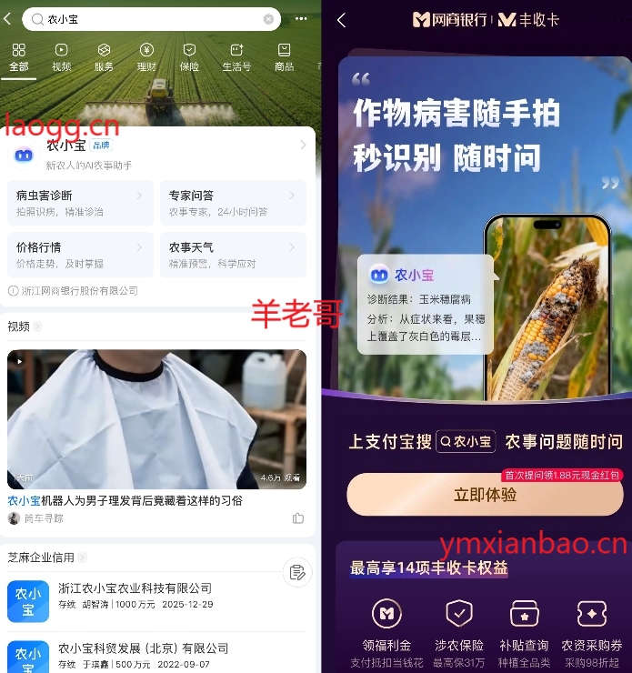 支付宝搜索“农小宝”,首次提问领1.88亓立减,有网商丰收卡的上