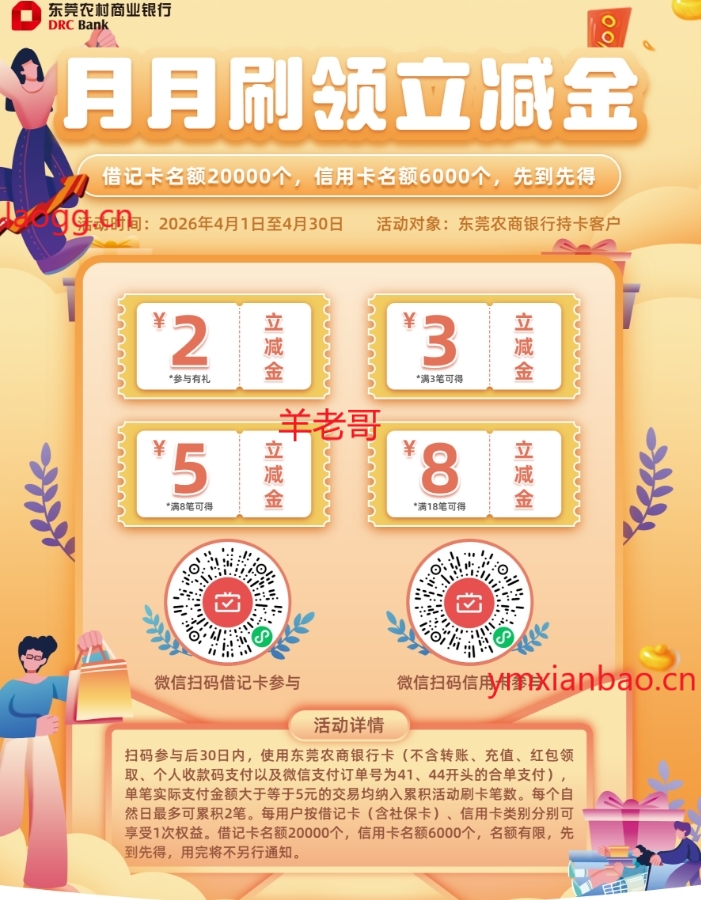 重庆农行+东莞农商+河南/山西工行月月刷立减金
