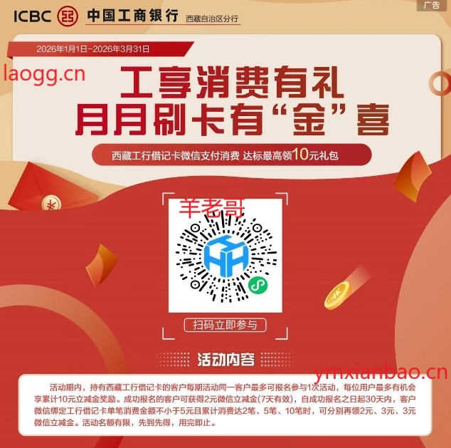 工行西藏月月刷立减金