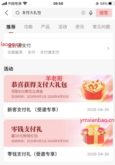 中信αρρ搜:支付大礼包,下拉活动部分,部分号受邀有8亓+10亓立减