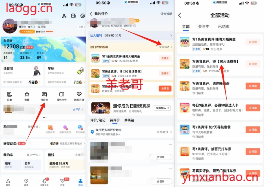 高德APP-我的-待评价,现在有写8条评论10无门槛话费卷,共2w份,话费券几个号可以叠加到一起充,兑换的时候填同一个手机号即可,还有1.2w份