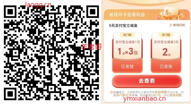 农行zfb5亓省钱月卡