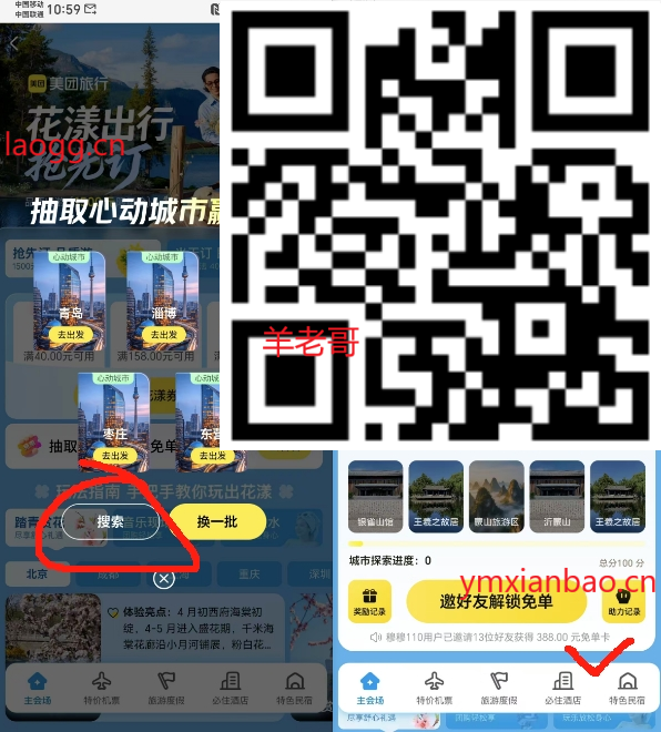 微xin或美团app识别,邀10~30人得388酒店免单,随机的哈,每天可能10个助力上限,可以选地区领到只本地自用 ,如他人助力 不显示进度就是黑号,换号参与