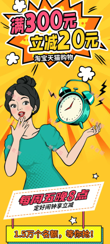 全国邮储银行借记卡每周五晚20点,淘宝、天猫、闲鱼消费满300减20(闲鱼小号发商品大号拍,20点准时付款)。活动时间到12月2日,每周名额限量1.5万名,先到先得。同一身份用户限参与2次。
